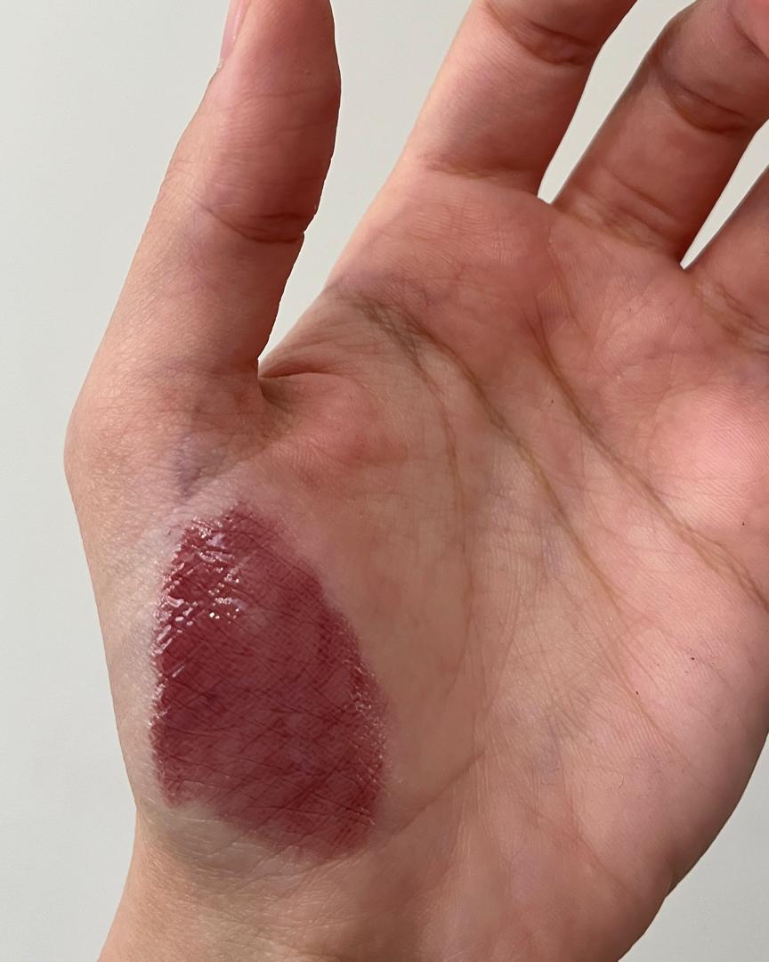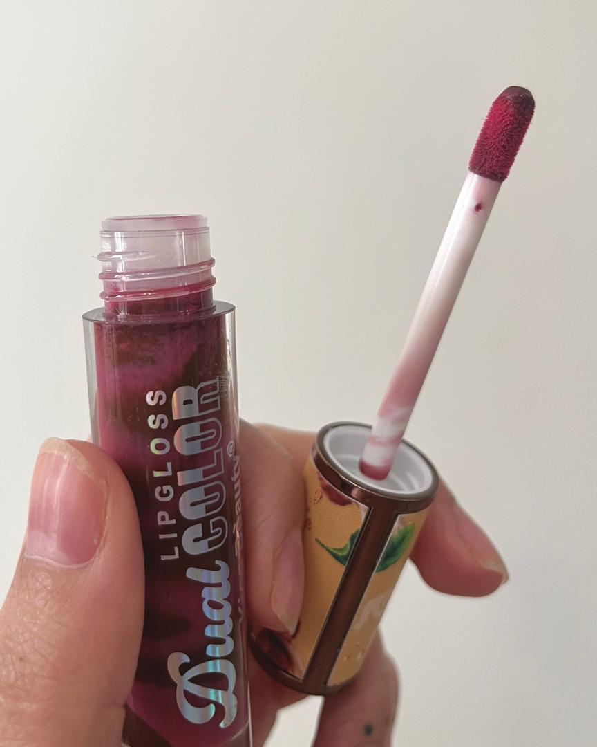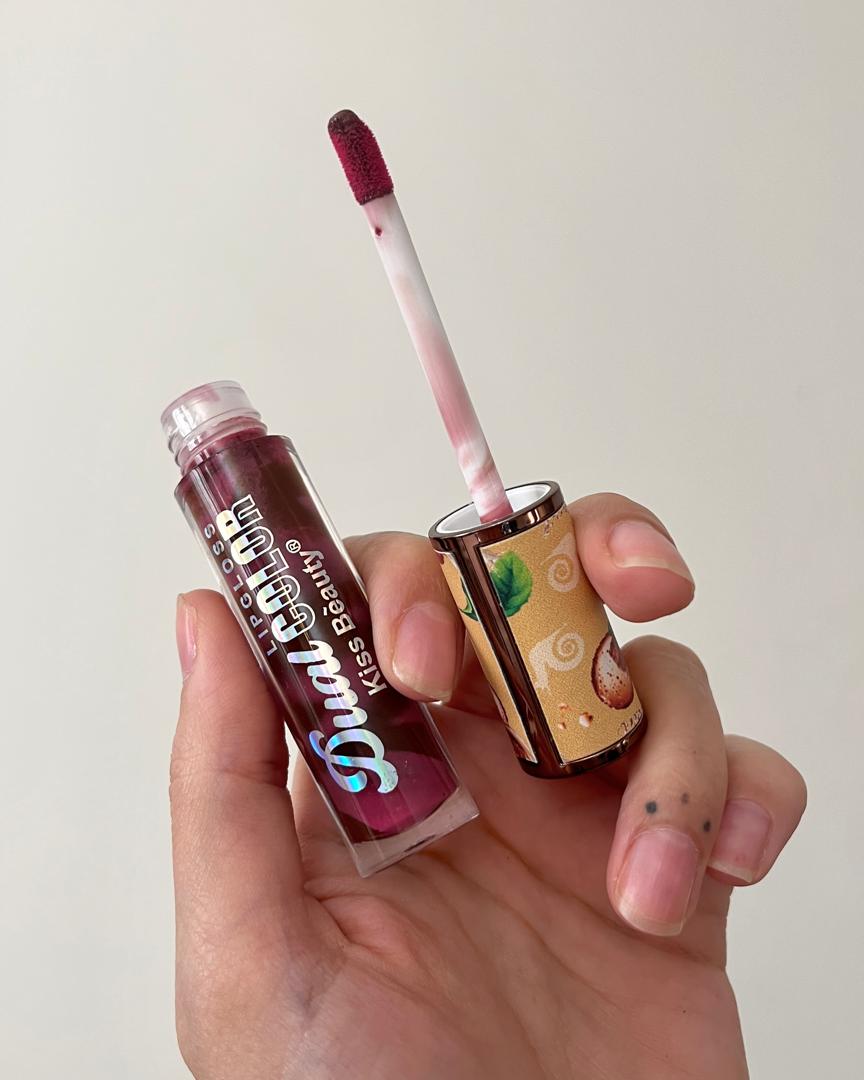 لیپگلاس آلبالویی شکلاتی🍒🍫 یه رنگبندی ترکیبی داری که رنگ شو هیجا ندیدی بوی شکلات میده یه رنگ آلبالویی خاص و خوشرنگی داره حجم و پیگمنت خوبی داره
