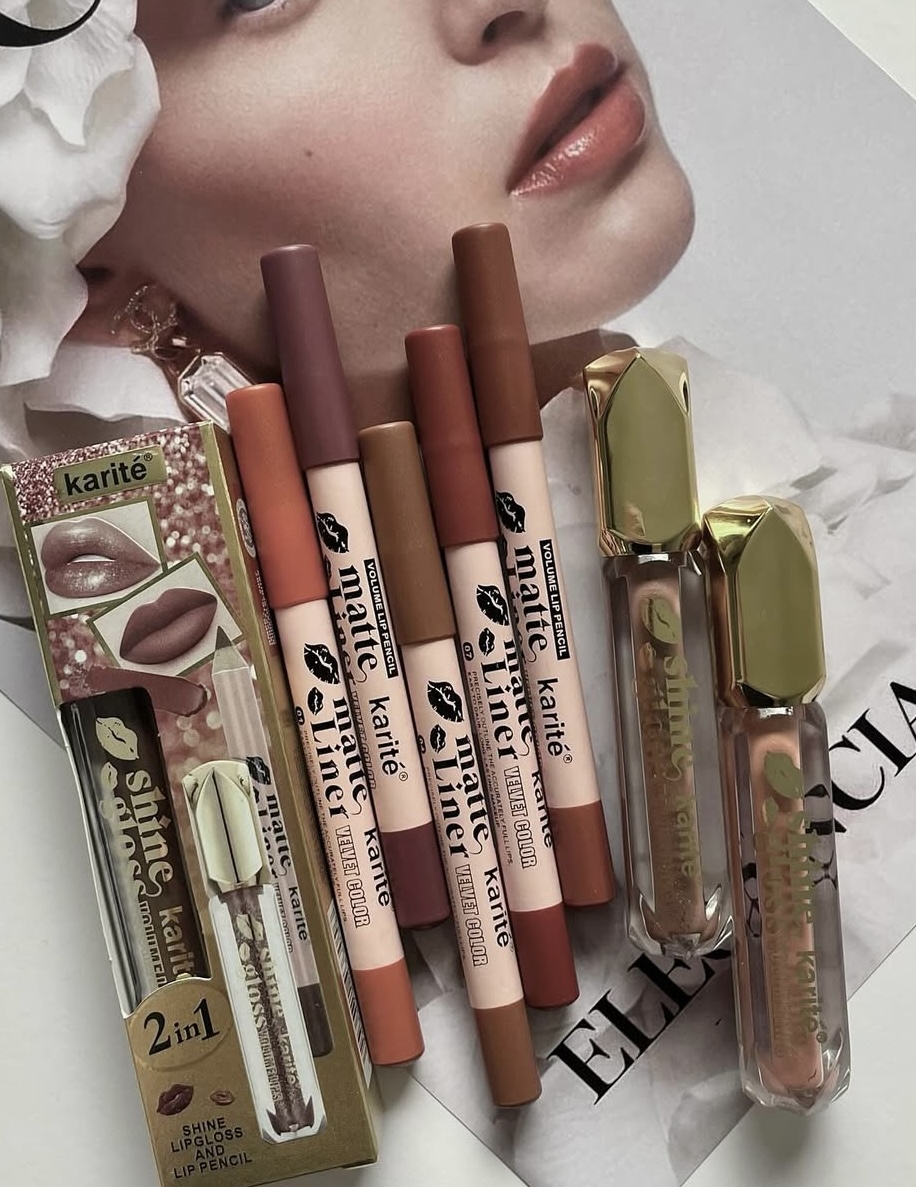 💌Karité lipgloss & lipliner💌 لیپ گلاس دارای شاین موجود در 8 رنگ -ساخت چین خط لب هم داره خیلییی خوش رنگ خوشبو هستن از رنگاش نگم کههمه شو قشنگن ق: