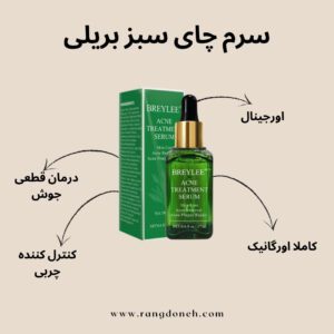 سرم چای سبز بریلی جذب سریع حجم 17 میل حاوی چای سبز سوزنی حذف جوش و آکنه کنترل کننده چربی حذف منافذ باز پوست صاف و شفاف کننده پوست آبرسانی و کنترل رطوبت پوست ضد التهاب آرامبخش پوست فاقد چربی