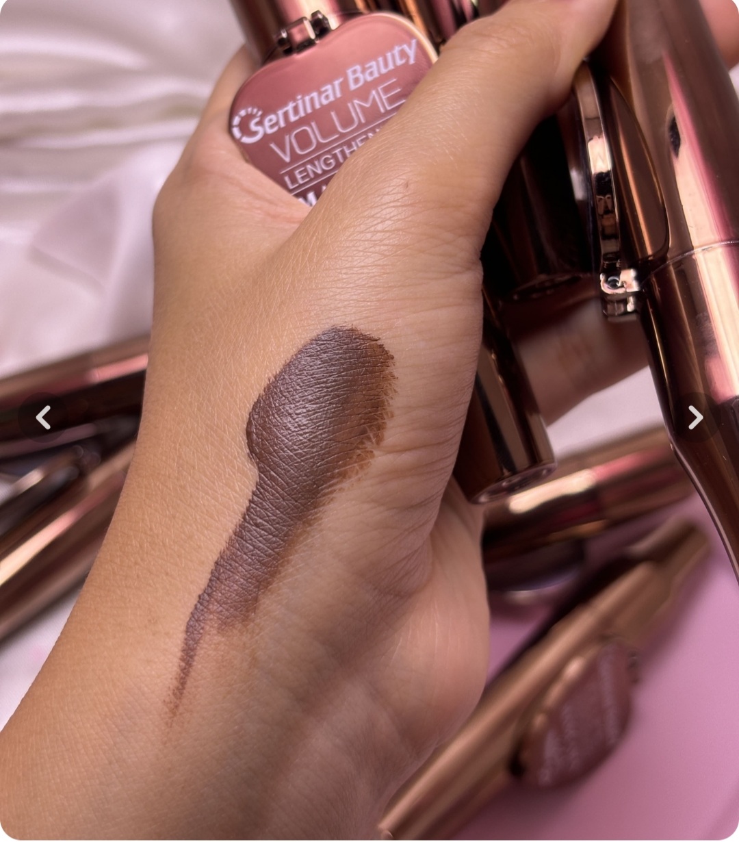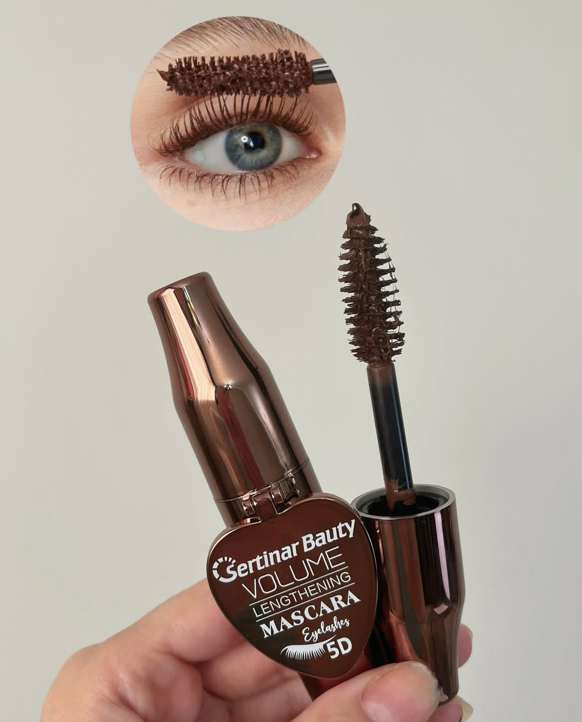 ریمل قهوه ایی srtinar beauty🤎 هم حجم دهنده همبلند کننده مژه ش رنگ قهوه ایی خیلی قشنگه و خیلییی حجم مواد داره مداد قهوه ایی بارین🤎 بشدت نرم و روان و پیگمنت بالا هم مناسب لب و خط چسم و داخل چشم