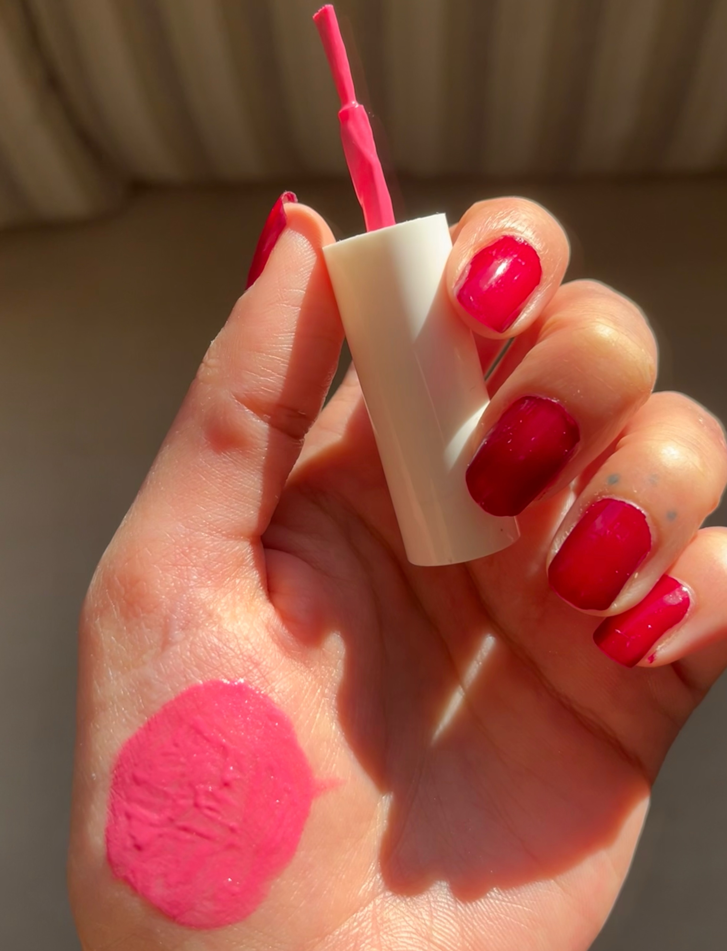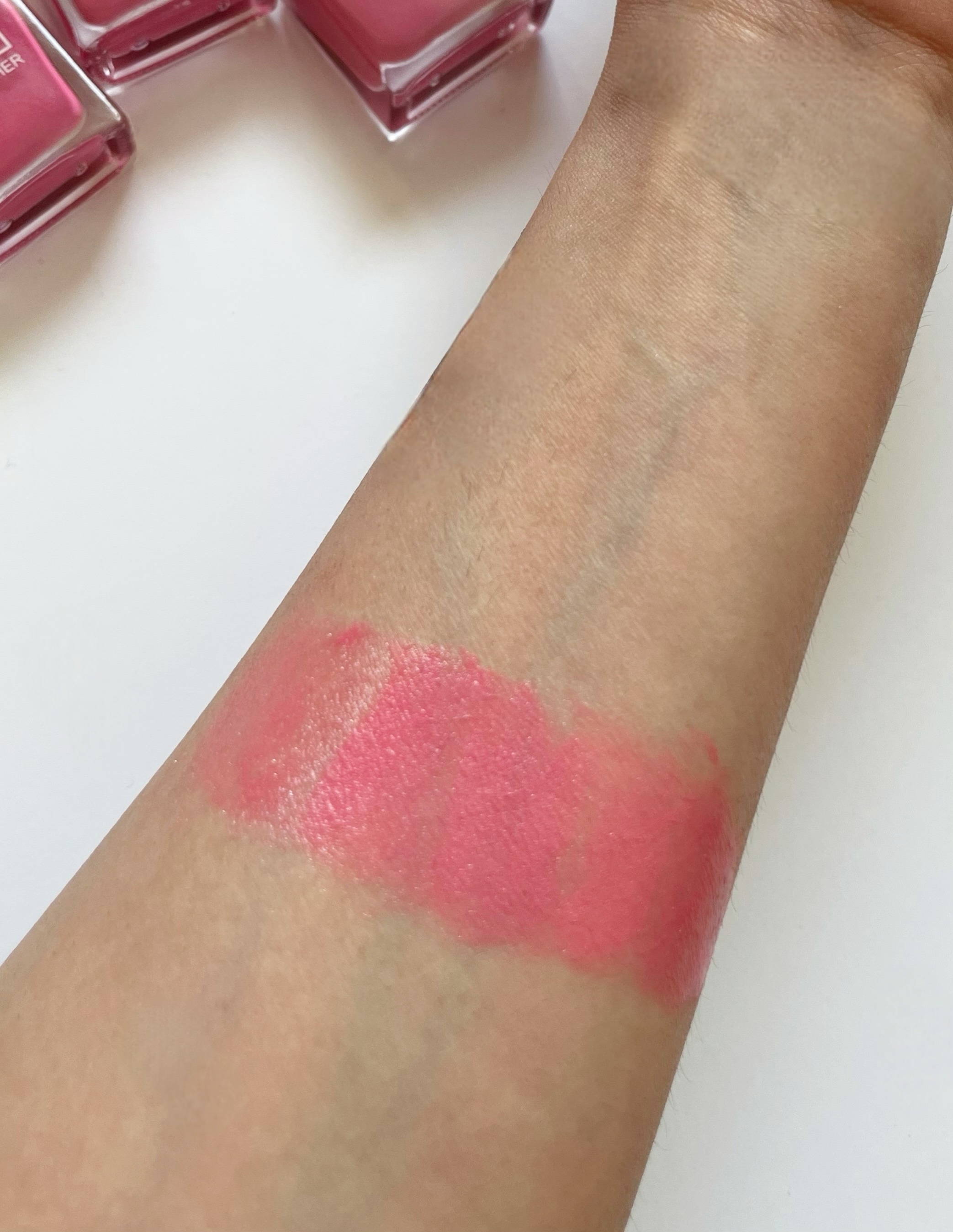 رژگونه صورتی برند لامیلا🩷 این رژگونه شبیه به لاک طراحی شده یه رنگ جذاب صورتی با شاین های ریز که جذابیتش رو بیشتر میکنه پیگمنت زیاد موندکاری بالا زود فید و پخش میشه🌸