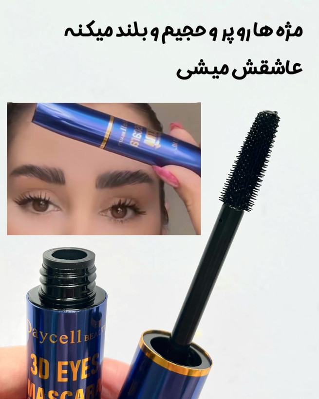 ریمل حجم دهنده مژه دایسل (Daycell 3d eyes mascara) جهت آرایش کامل مژه ها ارائه گردیده که با بافت فوق العاده خود و اپلیکاتور (فرچه) حرفه ای مژه هایی بلند، حجیم و مشکی پر رنگ با جلوه ای مات را به نمایش می گذارد. برس های ریز و پر تراکم فرچه این ریمل با شانه کشیدن مژه هایتان مواد ارگانیک ریمل را بر روی مژه ها قرار می دهند و در نهایت مژها هایی با پرپشتی و بلندی طبیعی خواهی داشت. این محصول ضد آب بوده و ماندگاری مناسبی دارد و در طول روز حالت زیبای مژه ها را حفظ می کند. تاثیری عمیق بر روی مژه ها داشته و نگاهی نافذ را به شما هدیه می کند. این ریمل رنگ مشکی خالصی دارد که برای افرادی که تمایل به داشتن مژه های تیره دارند کاملا ایده آل است. این برس ریمل را به طور یکنواخت از ریشه تا نوک مژه ها پخش می کند و ظاهری طبیعی به آن ها می دهد.