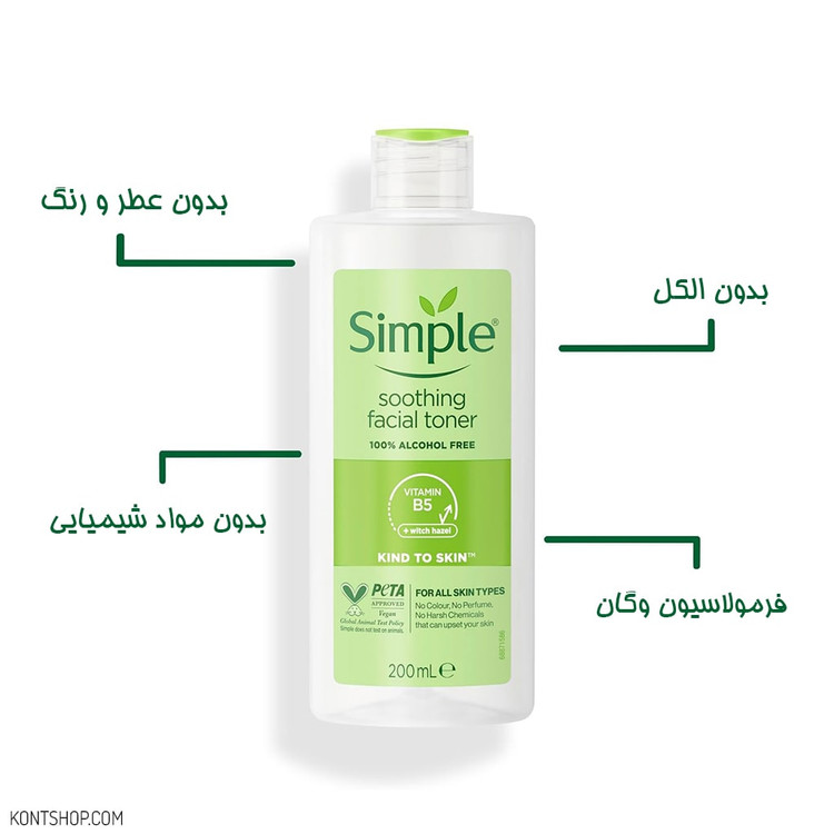 - آرامش بخش: تونر سیمپل حاوی عصارههای طبیعی مانند آلوئه ورا است که به تسکین پوست حساس و کاهش التهاب کمک میکند.